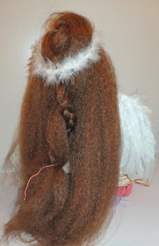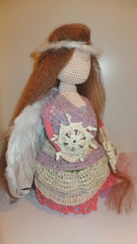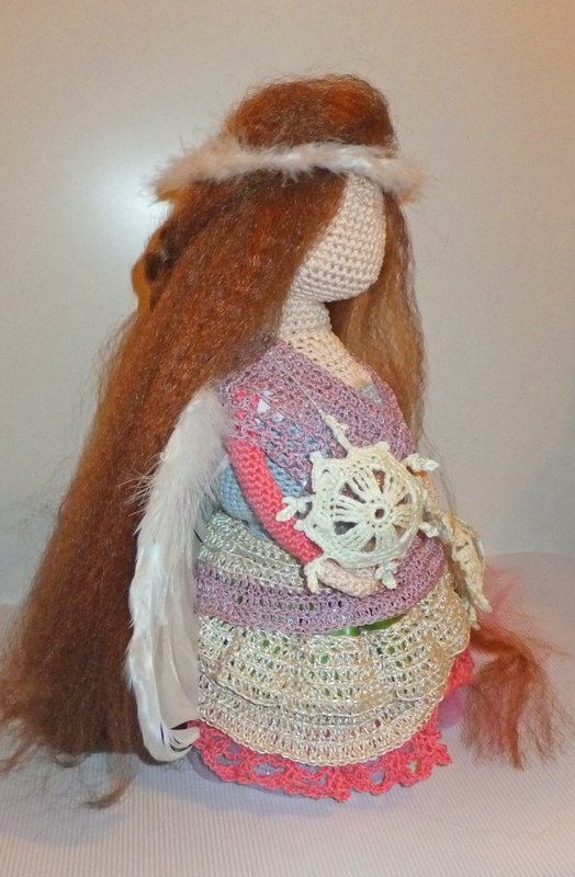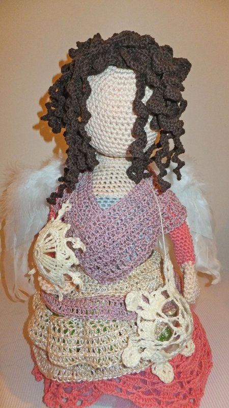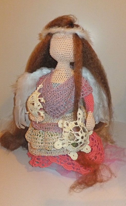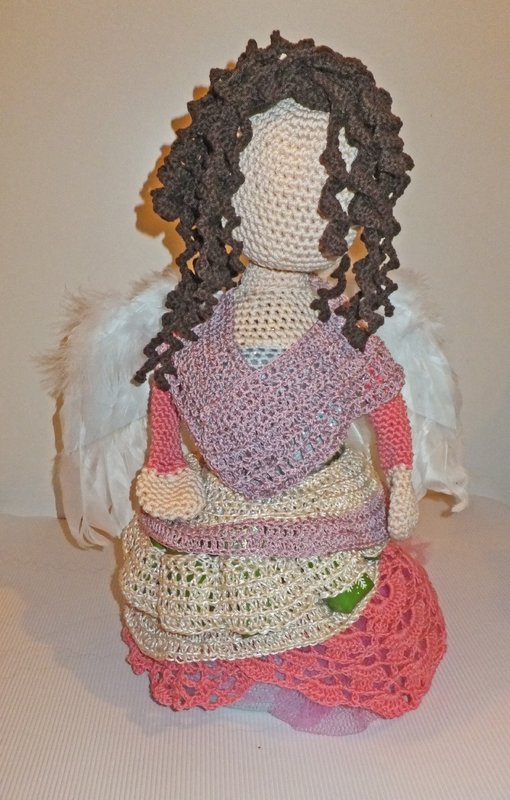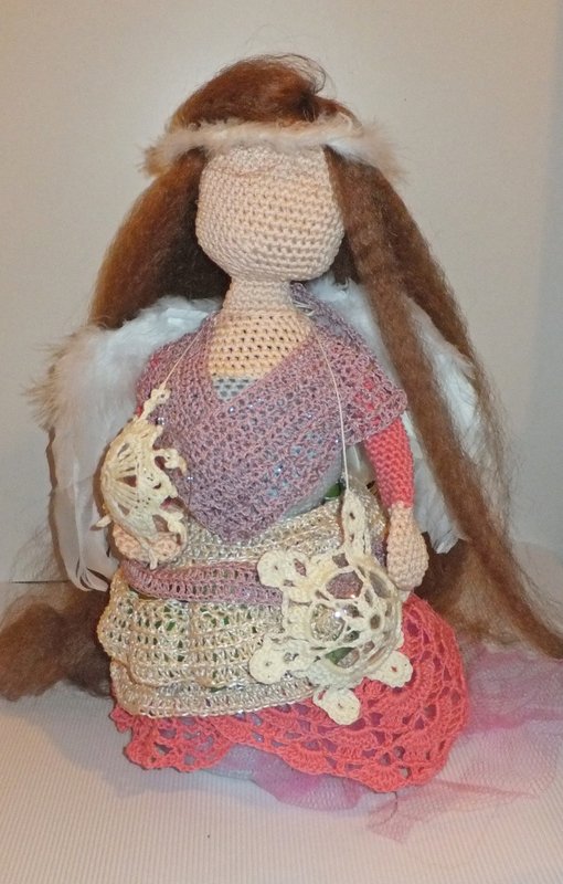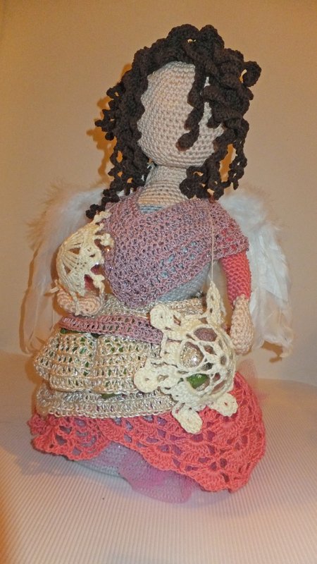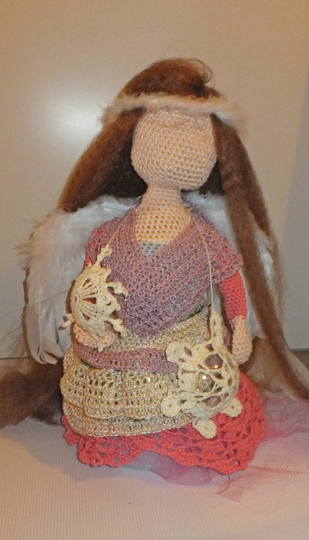 Im Kleid können 12 Geschenk untergebracht werden, und in jede Schneekugel auch nochmal je eine Kleinigkeit. Die restlichen Geschenke werden einfach vor den Engel gelegt. Das Engelchen wird fast 50 cm groß.