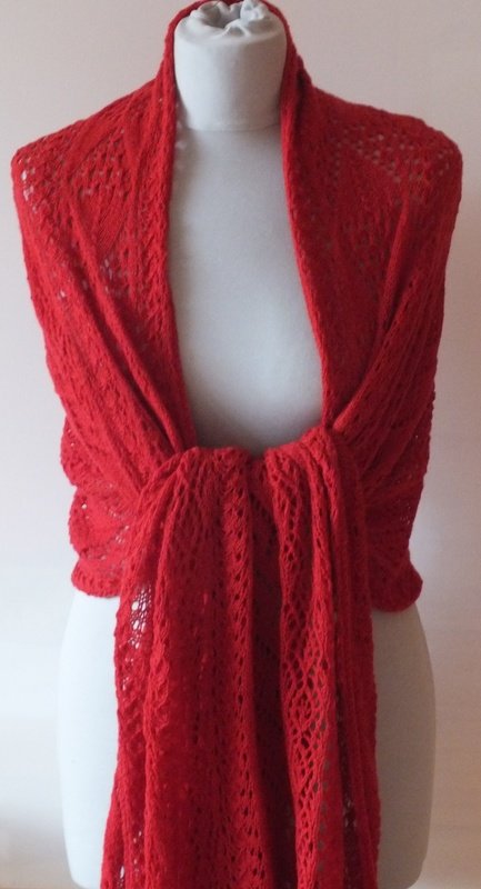 Breite 58cm, Länge 208cm. Sie benötigen etwa 200-300g Lacegarn (je nach Lauflänge) bzw. 1450m bis 1600m.