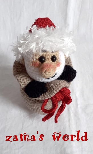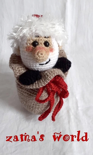 Die Größe Deines Santa im Säckchen kann je nach Maschendichte, Garndicke und verwendeter Häkelnadel abweichen.
