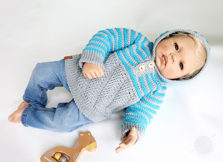 Die Häkelanleitung für die dazu passende Hose mit dem Spiralmuster finden Sie hier: https://www.crazypatterns.net/de/items/86827/pumphose-leon-fuer-babys-kinder-gr-50-116-spiralmuster