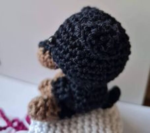 Ich hatte mir lebende Rottweiler Welpen angeschaut und die dann nach gehäkelt.