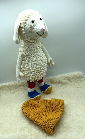 Das ist das coole Schaf Wolle. Zugegeben, etwas aufwändig, aber es lohnt sich. Der Wolle macht sich gut als Deko auf deinem Sofa, oder kuschel ihn einfach, das mag er am liebsten.