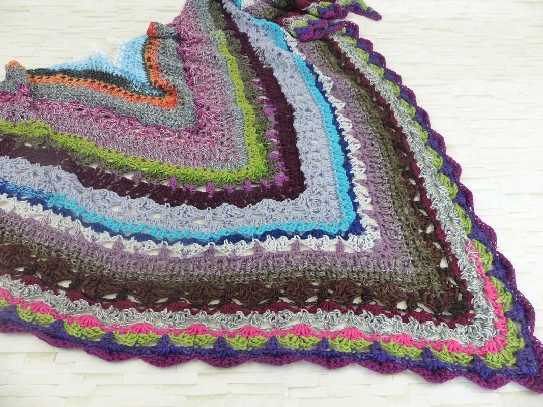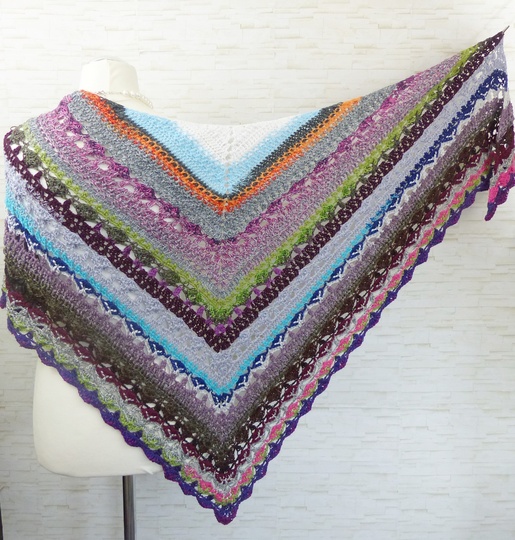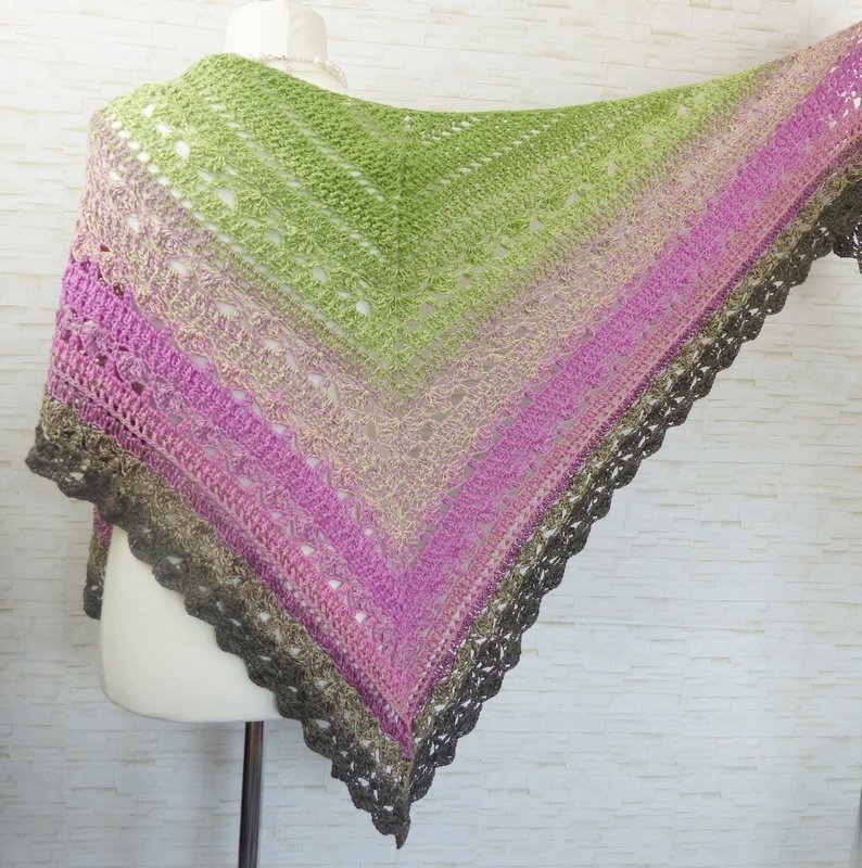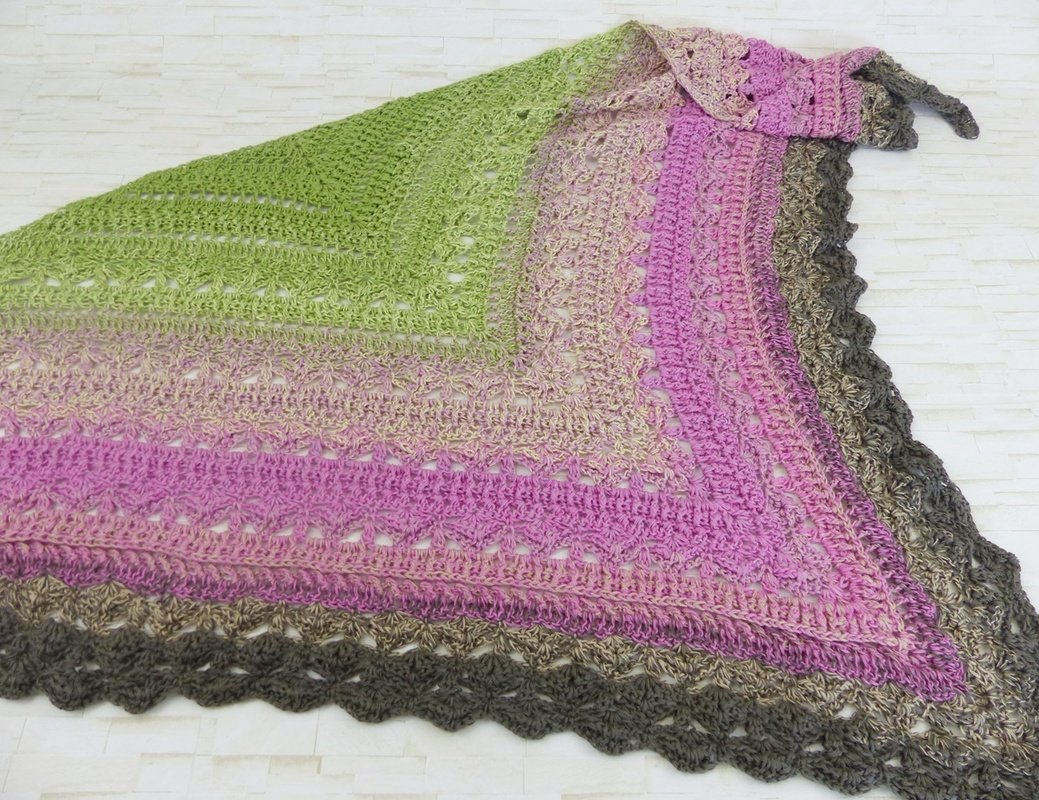 "Elenoor" ist ein schönes Häkeltuch, das sowohl als Dreieckstuch mit Farbverlaufswolle oder auch im XXL-Format mit Fransen als Ponchotuch gehäkelt werden kann. Es ist in jeder Variante toll.