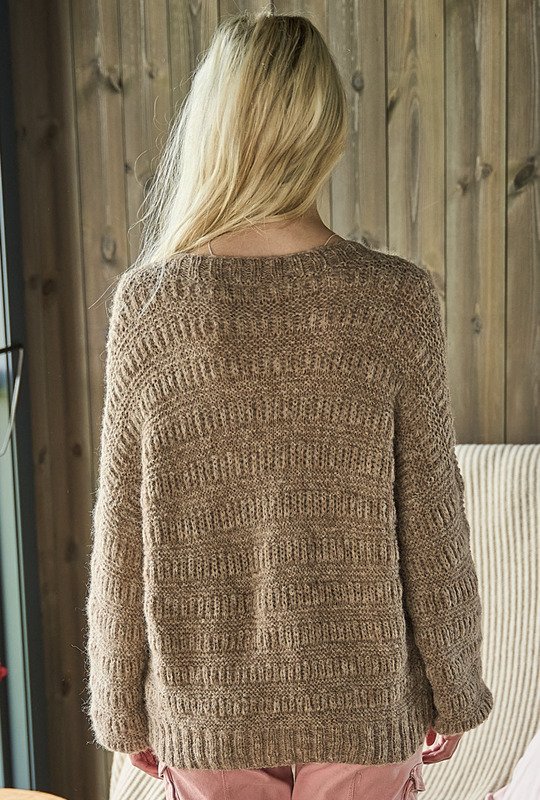 Patentmuster gehören zu einem der beliebtesten Looks in Handstrick. Bei diesem Pulli werden die Längsrippen mit Querstreifen aus kraus rechts kombiniert - eine ausdrucksstarke Kombination, bei der nach etwas Übung auch Strickeinsteiger zum Erfolg kommen. Elastische Rippenbündchen und die Blende am tiefen V-Ausschnitt bringen alles schön in Form und geben den weiten Ärmeln die angesagte Keulenform. Besonders leicht und weich ist das Garn: Ungefärbtes Alpaka, das mit Synthetikfasern angereichert wurde. Tipp: Von Hand waschen – so hast Du besonders lange etwas von diesem aparten Strickstück.