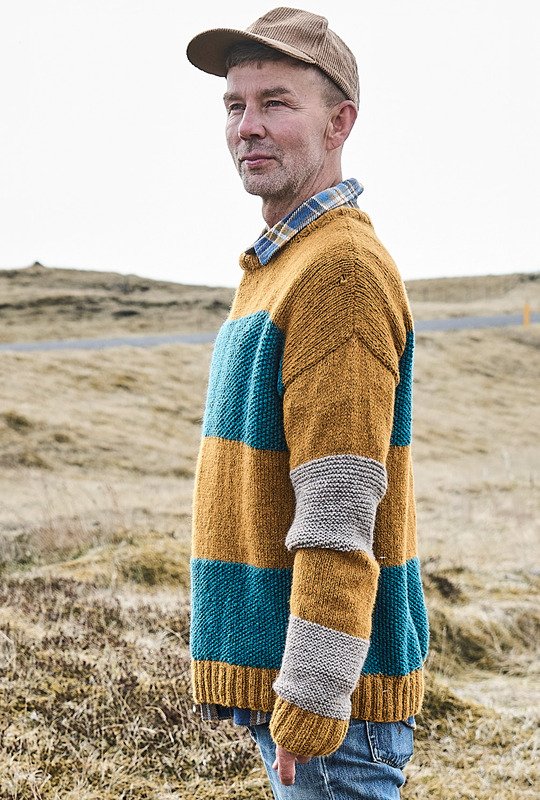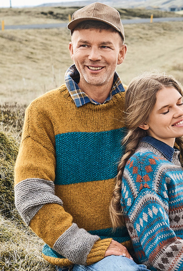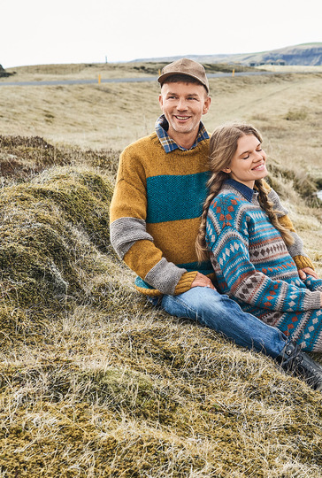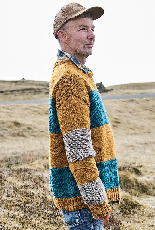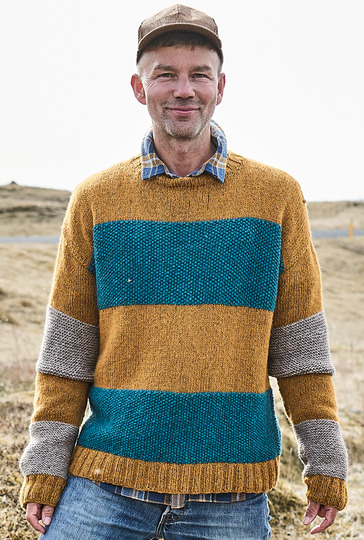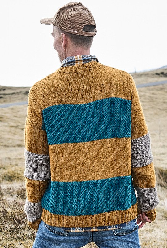 Die Liebe geht durch die Masche! Umgarne ihn mit diesem tollen Pulli aus weichem Alpakamischgarn. Denn mit den breiten Streifen, die mal glatt rechts oder kraus rechts gestrickt und mit Perlstrukturen vervollständigt werden, kommst du auch als weniger versierte Strickerin schnell zum Ziel. Der Farbwechsel in Ocker, Petrol und Greige sorgt für Abwechslung und lässt den Sweater mit Nadel 6 im Nu wachsen. Bündchen und Blenden im elastischen Rippenmuster halten alles schön in Form und sorgen für den lässigen Sitz.