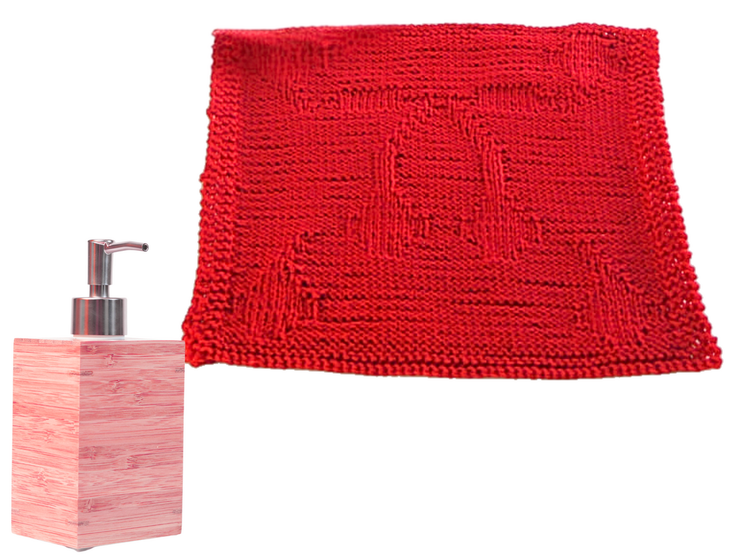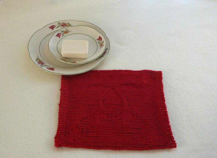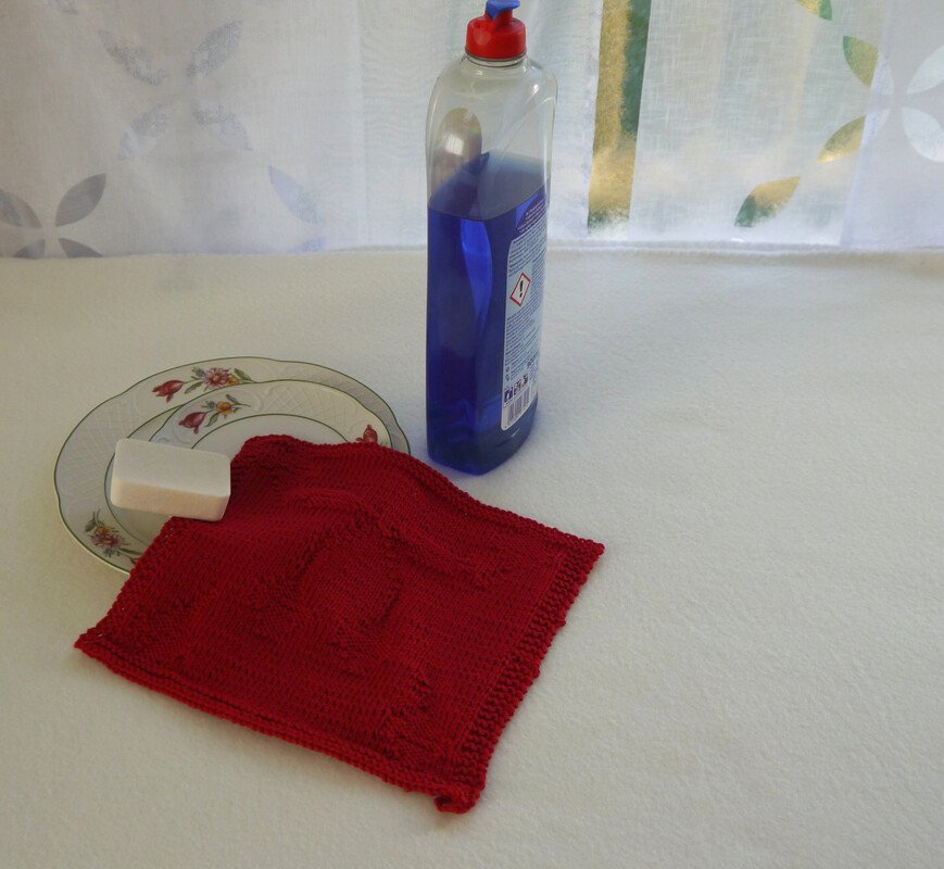 22,5 x 19 cm bzw. 24 x 23 cm, wenn oben und unten je 6 Reihen kraus rechts sowie 4 Reihen glatt rechts gestrickt werden.