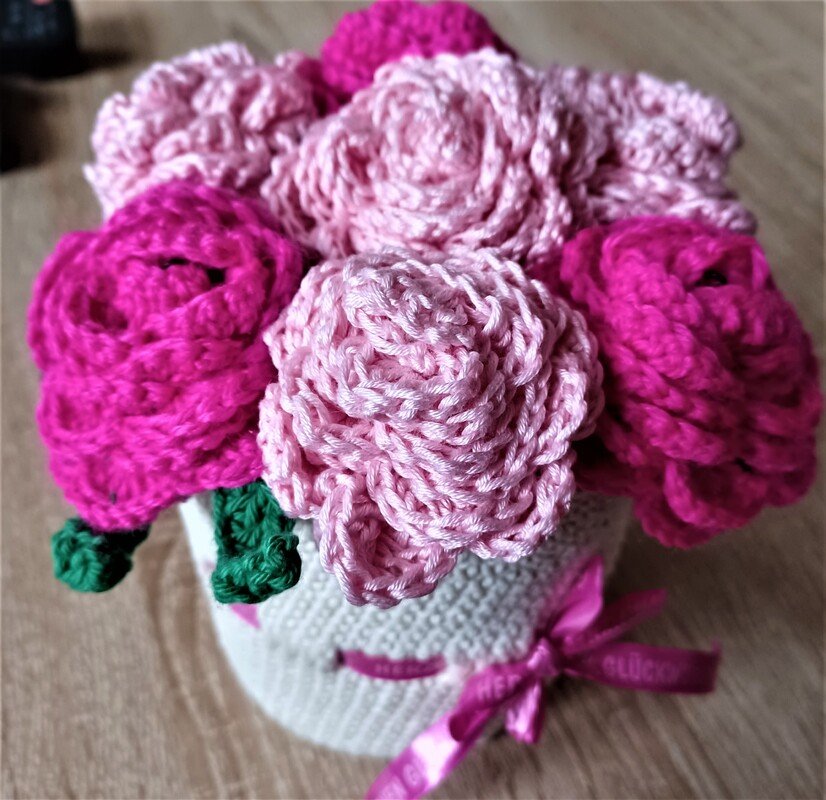 Gehäkelt wird überwiegend in Festen Maschen und Stäbchen, ein wenig Geschick bietet sich beim Zusammennähen der einzelnen Rosetten an, aber auch das erkläre ich in der Anleitung.Geduldige "Anfänger" dürfen sich also gern an diese Anleitung trauen.