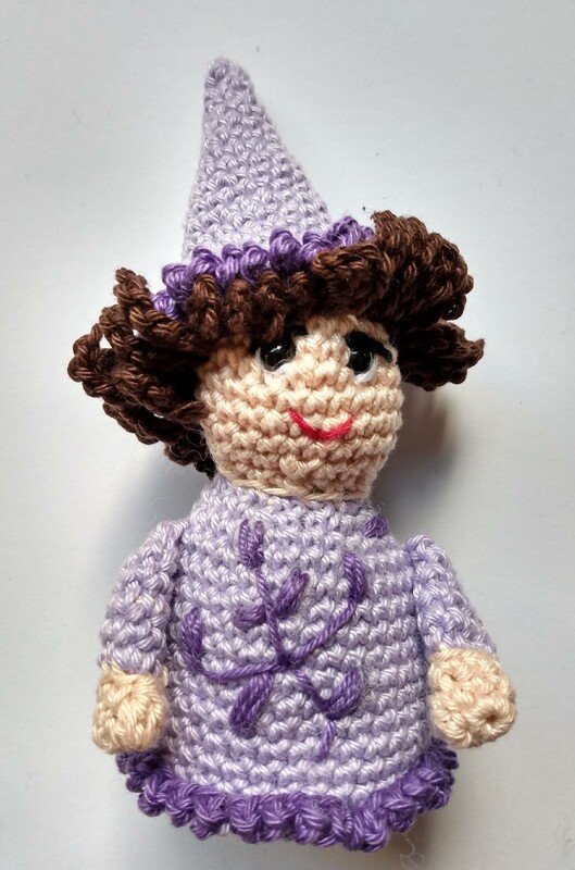 Zusammengenäht wird die Kräuterhexe etwa 6 cm im Durchmesser und 14 cm hoch. (Bitte beachte, wenn du eine andere Nadelstärke benutzt, wird deine Kräuterhexe größer oder kleiner.)