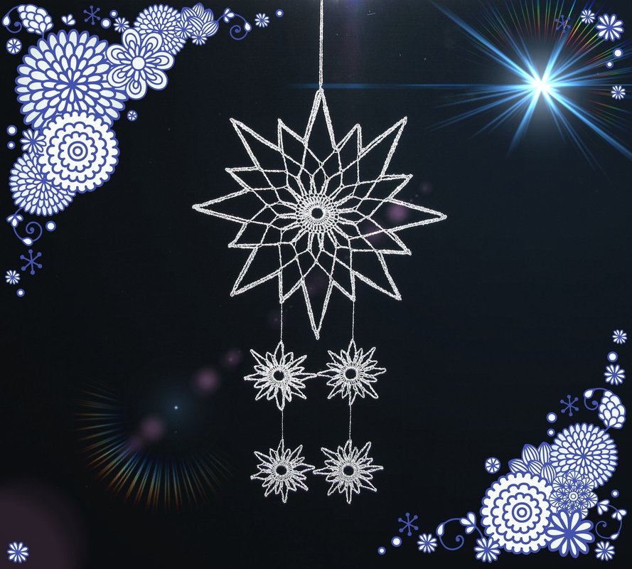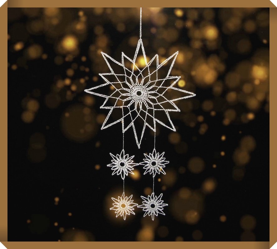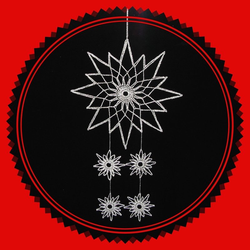 Fensterdekoration mit 5 Häkelsterne 1 x 24cm und 4 x 7cm Schneeflocken, Häkelsterne, für weihnachtliche Dekorationen.
