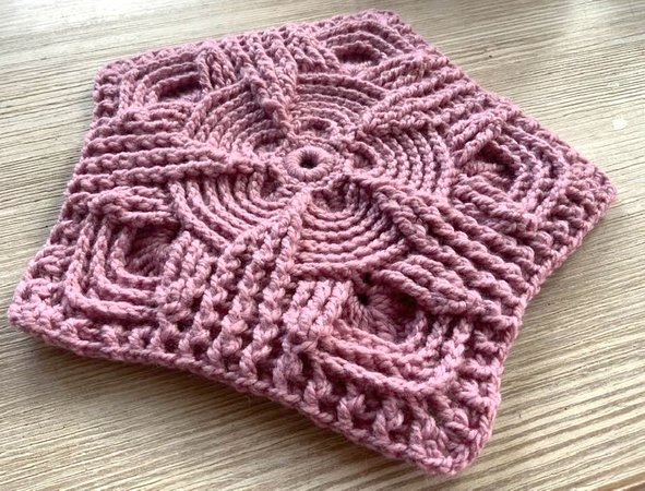 Das fertige Reliefgranny "FEIF" bei 14 RUNDEN eine Seitenlänge von 19 cm