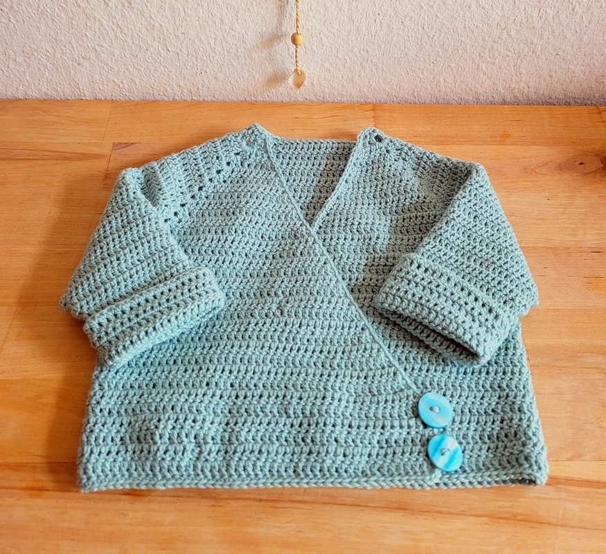 Und für den Anfang ist die Wickeljacke Xenia ideal. Von oben gearbeitet, einfach zu häkeln und gut an die