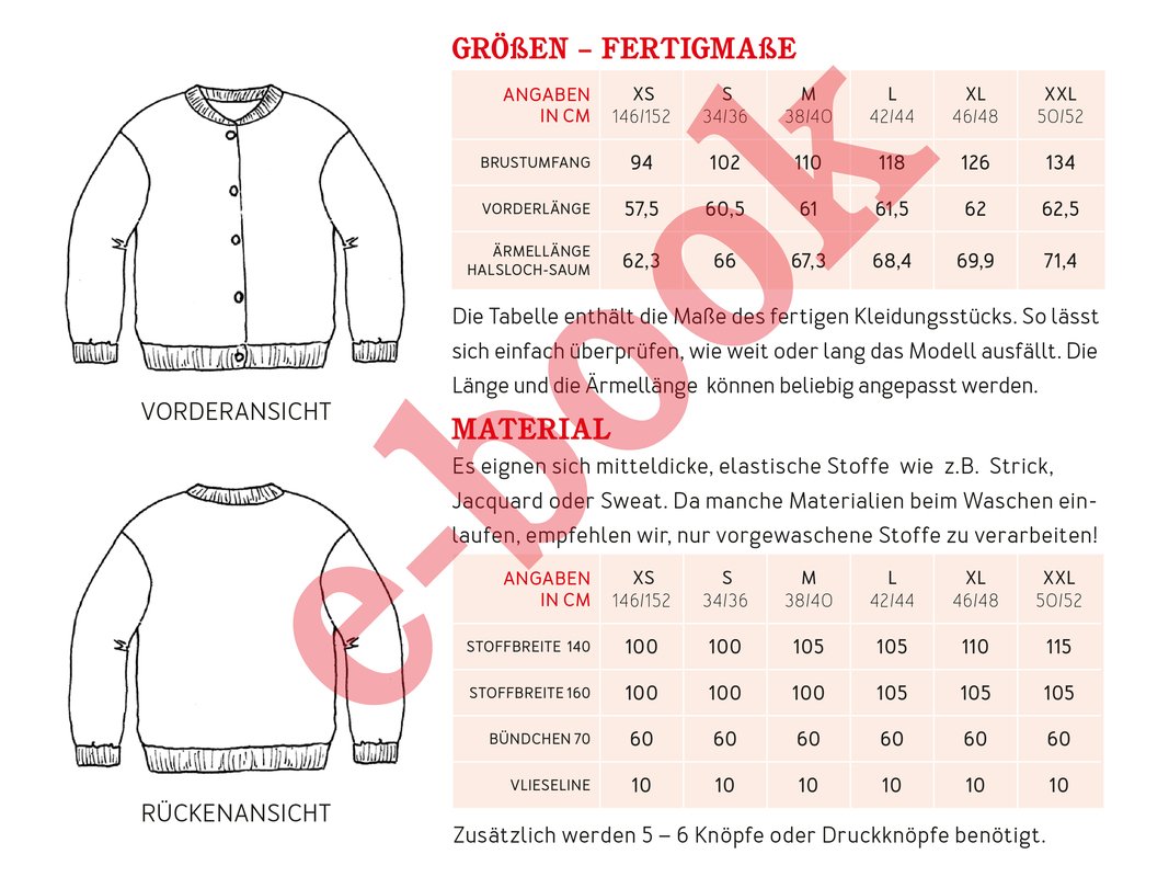 zusätzlich werden 5 – 6 Knöpfe oder Druckknöpfe, Vlieseline und Bündchenware benötigt