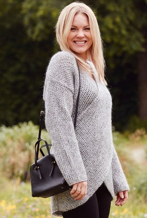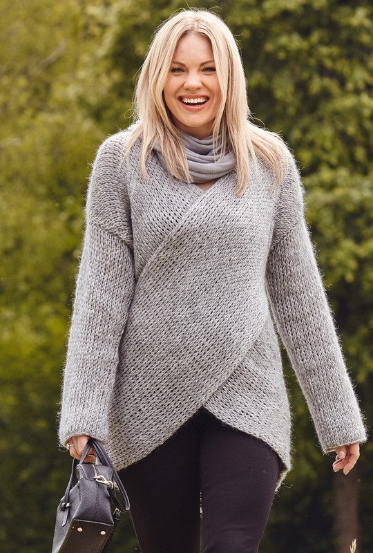 Dieser Figur schmeichelnder Pullover mit asymmetrischem Vorderteil ist schlicht ein Meisterwerk. Das schöne Silbergrau unterstreicht noch diesen Eindruck. Auf den ersten Blick sieht er aus wie glatt rechts gestrickt. Jedoch ist er in tunesischer Häkeltechnik gearbeitet. Eine Technik, die sich wieder großer Beliebtheit erfreut. Mit einer speziellen Nadel werden die Reihen hin (hier werden Schlingen auf die Nadel geholt) und zurück (hier werden die Schlingen abgehäkelt) gearbeitet, ohne das Teil zu wenden. Der ausgefallene Schnitt bedarf es, dass beim Zusammennähen genau nach dem Schnitt gearbeitet wird. Nur so entsteht diese Art Wickelung am Vorderteil. Gehäkelt wird mit Garn von Lana Grossa und einer Nadelstärke Nr 8. Die Anleitung gilt für die Größen 36, 38, 40, 42, 44, 46.