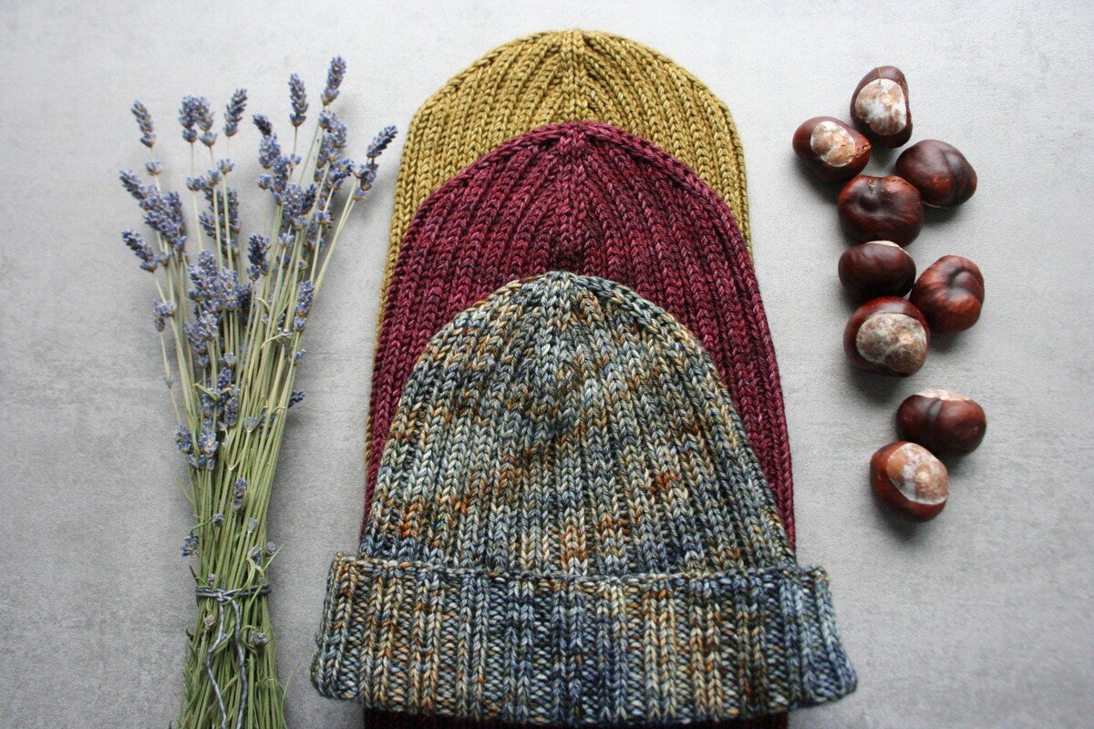 Bamberg ist eine Mütze im Rippenmuster. Das Bündchen kann nach oben umgeschlagen werden. Man kann es aber auch als Hightop Beanie tragen. Das Muster ist anfängerfreundlich. Die Mütze ist unisex und kann für KU von 40 bis 60 cm gestrickt werden.