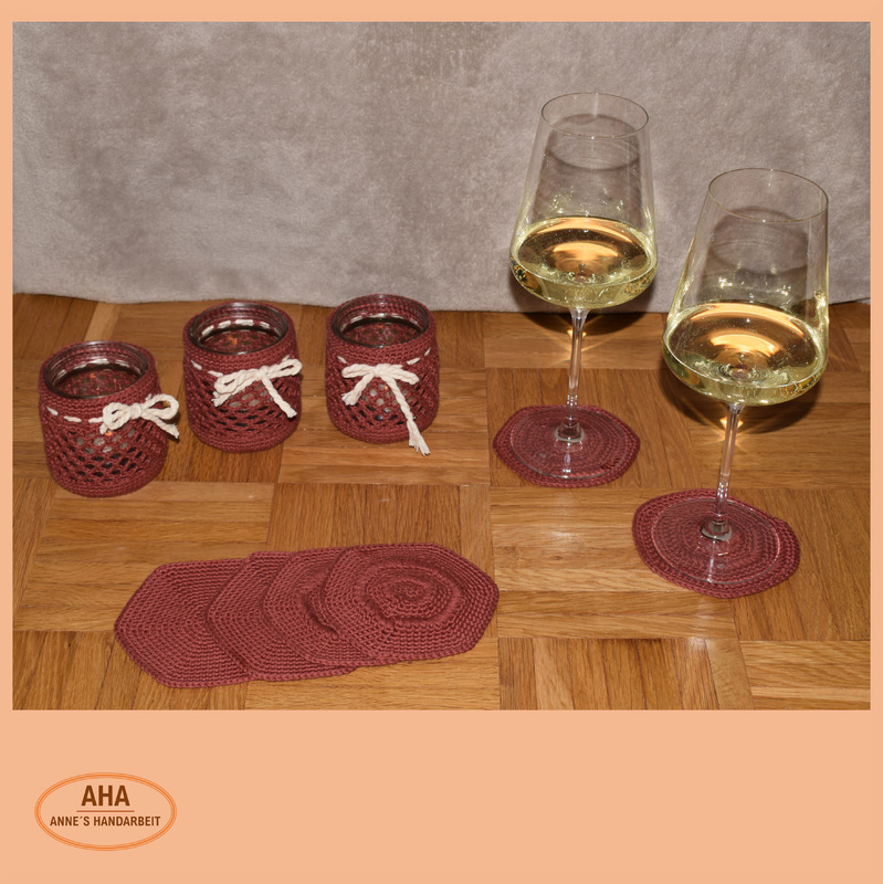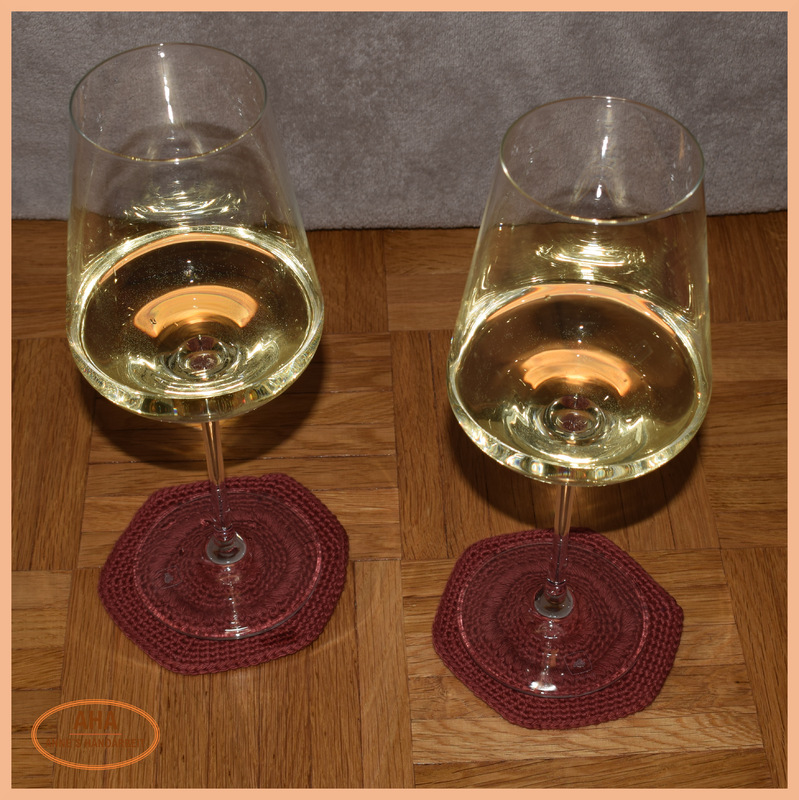 Wer kennt es nicht, da holt man sich etwas zu trinken, stellt es auf den Tisch und schon sind da wieder hässliche Ränder vom Getränk. Mit gehäkelten Untersetzern kann das nichtmehr passieren, die Untersetzer können gelegentlich in die Waschmaschine und der Tisch bleibt sauber.
