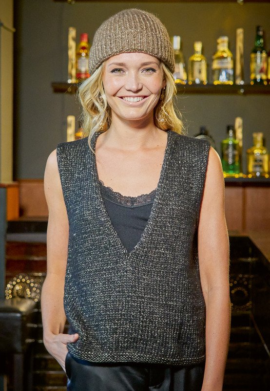Echte Freunde sind hier Mütze, Schal und Top, denn sie ergeben ein perfektes Outfit für die Festtage. Ob auf nackter Haut oder als Pullunder über einer Seidenbluse: Das Top aus softem Lurex-Garn sieht immer festlich aus. Alle Teile sind ganz unkompliziert und recht schnell zu stricken. Das Top wird in zwei Teilen glatt rechts gestrickt, der Schal im Patentmuster und die Mütze im Rippenmuster. Besonders der Schal und das Top geben auch wunderbare Geschenke für die besten Freundinnen ab – denn wer freut sich nichtüber Accessoires, die den trüben Wintertagen Glamour einhauchen.