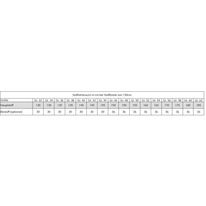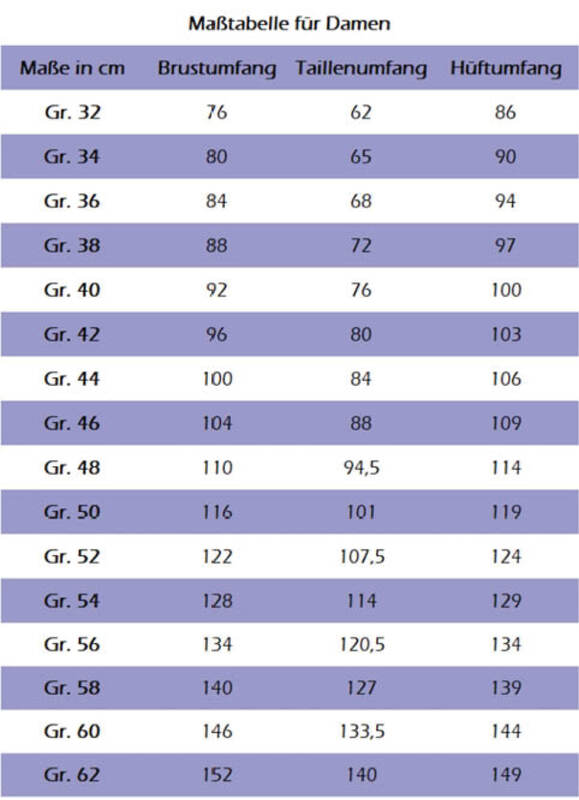 Im Schnittmuster enthalten sind die Damengrößen 32 - 62.