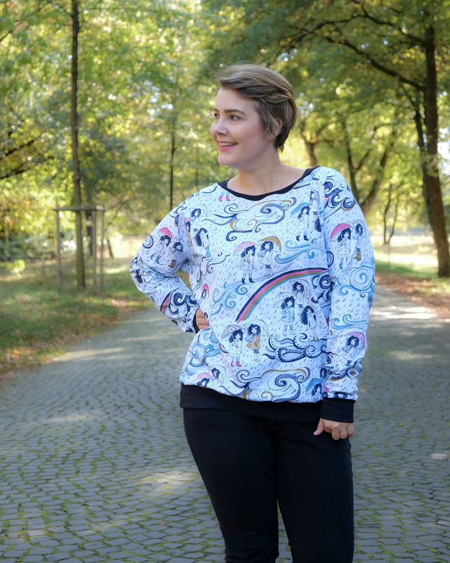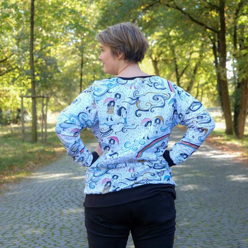Zusammengefasst: Dieser Schnitt bietet dir einen Fledermaus-Raglan-Sweater den du entweder komplett aus dem Hauptstoff nähen kannst oder mit Bündchen aus Bündchenware.