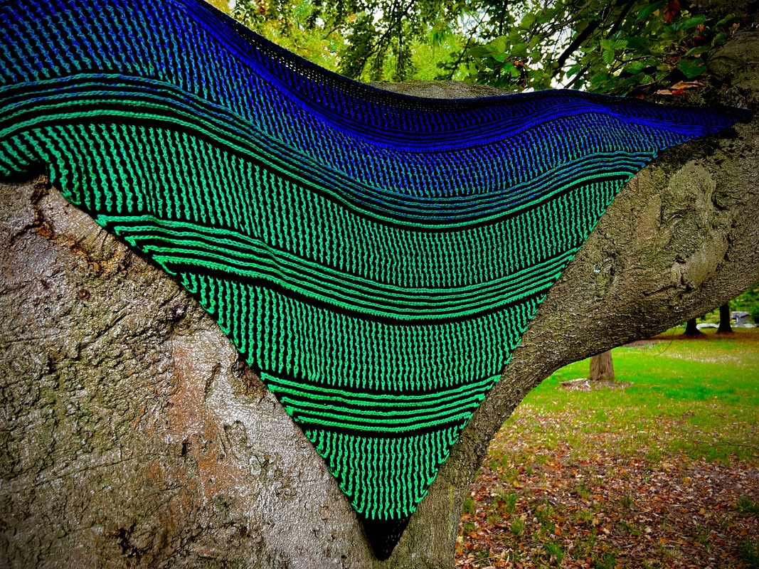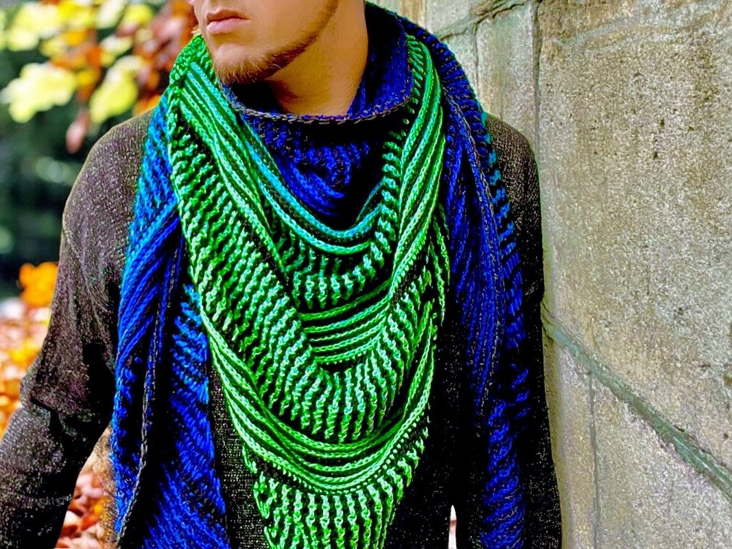Häkel dir das Tuch Polarfjord, dieses Dreieckstuch wird mit 2 Farben gleichzeitig gehäkelt. Das Brioche Tuch besteht aus 2 Mustern, die Schritt für Schritt erklärt sind, bebildert und mit Häkelschrift. Viel Spaß.