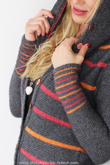 Raffiniert werden linke und rechte Maschen in Kombination mit variierten Farben eingesetzt -