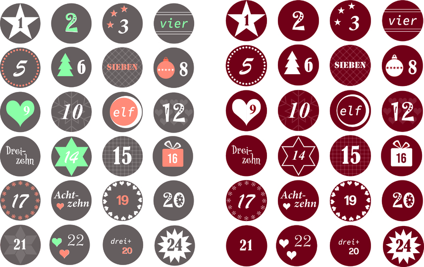 Desweiteren ist eine Druckvorlage für die Nummerierung in zwei unterschiedlichen Farbvarianten dabei (siehe letztes Bild).