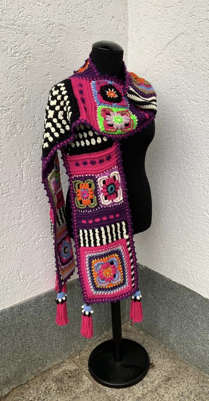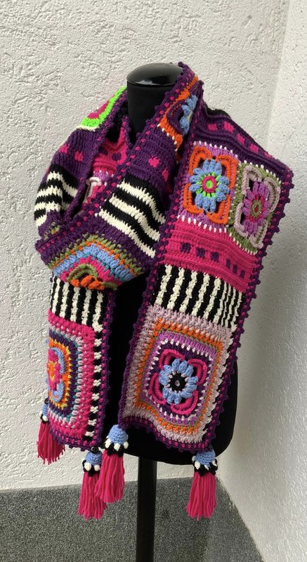 Der schöne Schal ist ein echtes Prunkstück...und so farbenfroh....ideal für die grauen Tage...