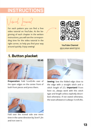Das Schnittmuster als Ebook für deine neue Lieblingsbluse "The Noella Blouse". Mit kostenloser Video-Anleitung auf unserem YouTube-Kanal JULIANA MARTEJEVS - Das DIY-Modelabel oder unserer Website (s. Profil).