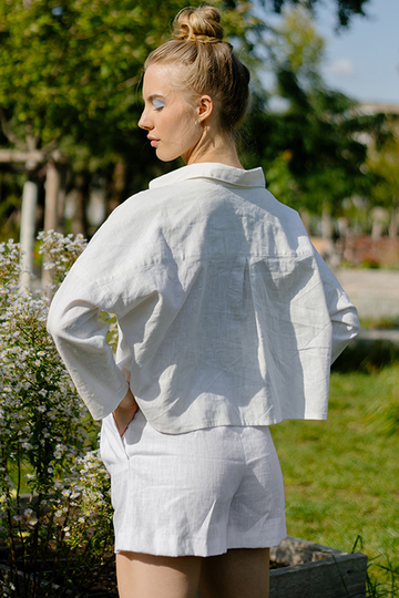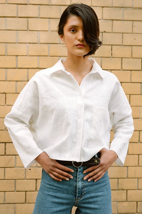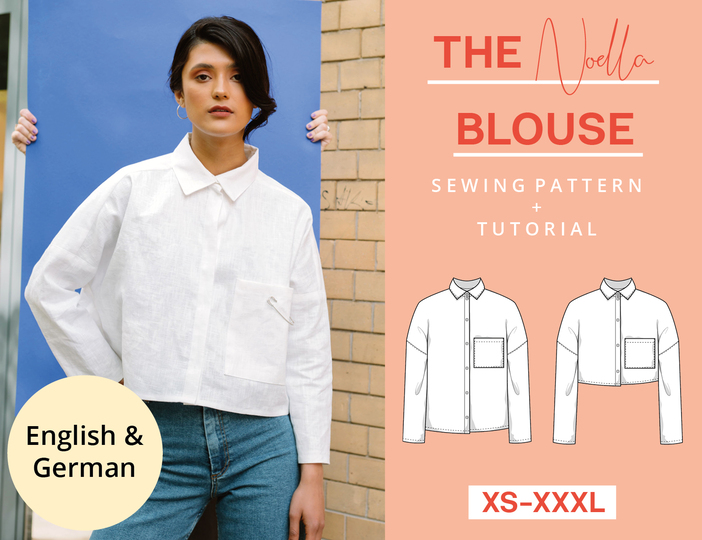 Komfort und Style schließen sich aus? Nicht mit der The Noella Blouse! Die weit geschnittene Bluse kannst du sowohl im Alltag, als auch im Büro tragen. Die großen aufgesetzten Taschen machen den modernen Look der Bluse aus. Das Schnittmuster bekommst du in zwei verschiedenen Längen: Cropped und Normallang. Tipp: Einfarbige Stoffe sind super für Anfänger an der Nähmaschine geeignet. Stoffe mit Mustern eignen sich für Fortgeschrittene, denn hier ist es wichtig, dass die einzelnen Schnittteile richtig im Muster zugeschnitten und genäht werden, sodass dieses fortläuft.