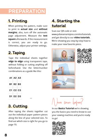Wenn du dein Schnittmuster heruntergeladen, zusammengeklebt und die Materialien beisammen hast, freue dich auf den spaßigen Produktions-Prozess, der jetzt folgt! Falls du noch nie genäht hast, schau dir als erstes unser Nähmaschinen Grundlagen Video-Tutorial auf unserem YouTube-Kanal an. In wenigen Minuten erfährst du alle Basics, die du für jedes JULIANA MARTEJEVS Ready-to-Sew Produkt benötigst. Dann klick einfach auf die zu deinem Produkt passende Video-Anleitung und los geht’s!