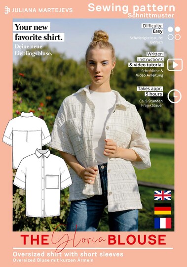 Das Schnittmuster als Ebook für deine neue Lieblingsbluse "The Gloria Blouse". Mit kostenloser Video-Anleitung auf unserem YouTube-Kanal JULIANA MARTEJEVS - Das DIY-Modelabel oder unserer Website (s. Profil).