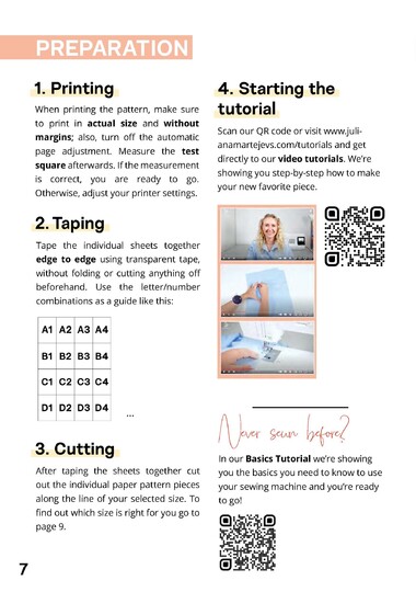 Wenn du dein Schnittmuster heruntergeladen, zusammengeklebt und die Materialien beisammen hast, freue dich auf den spaßigen Produktions-Prozess, der jetzt folgt! Falls du noch nie genäht hast, schau dir als erstes unser Nähmaschinen Grundlagen Video-Tutorial auf unserem YouTube-Kanal an. In wenigen Minuten erfährst du alle Basics, die du für jedes JULIANA MARTEJEVS Nähprojekt benötigst. Dann klick einfach auf die zu deinem Produkt passende Video-Anleitung und los geht’s!
