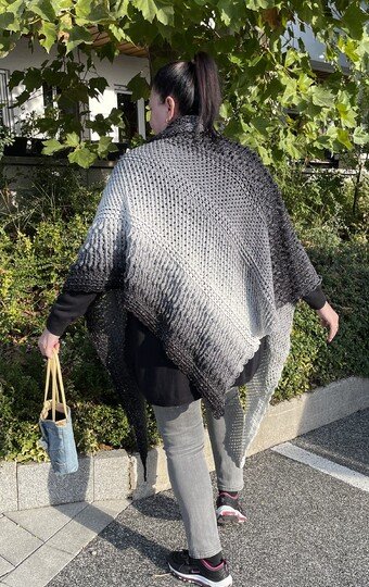 Mit 1400m Garn erreicht das Tuch eine Spannweite von ca. 160cm und eine Tiefe von ca. 75cm.