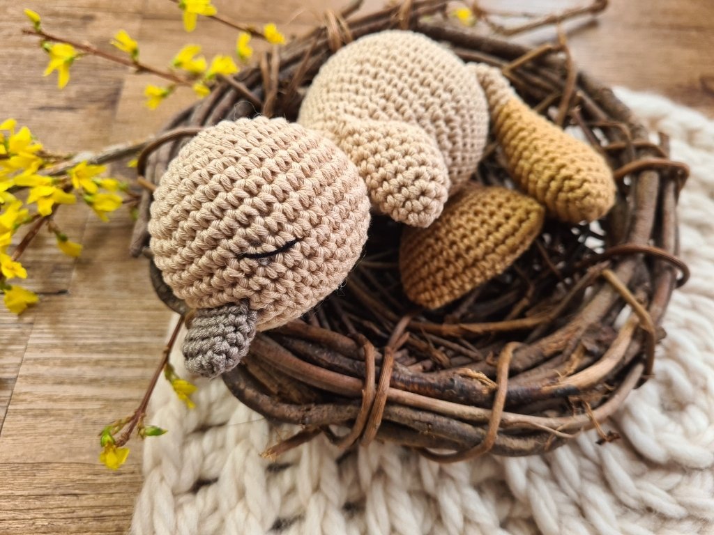 Mit wenig Material ist sie leicht zu häkeln und läd schnell zum Kuscheln und Liebhaben ein. Ein schönes Geschenk zur Geburt, zur Taufe oder einfach als kleine Freude zwischendurch.
