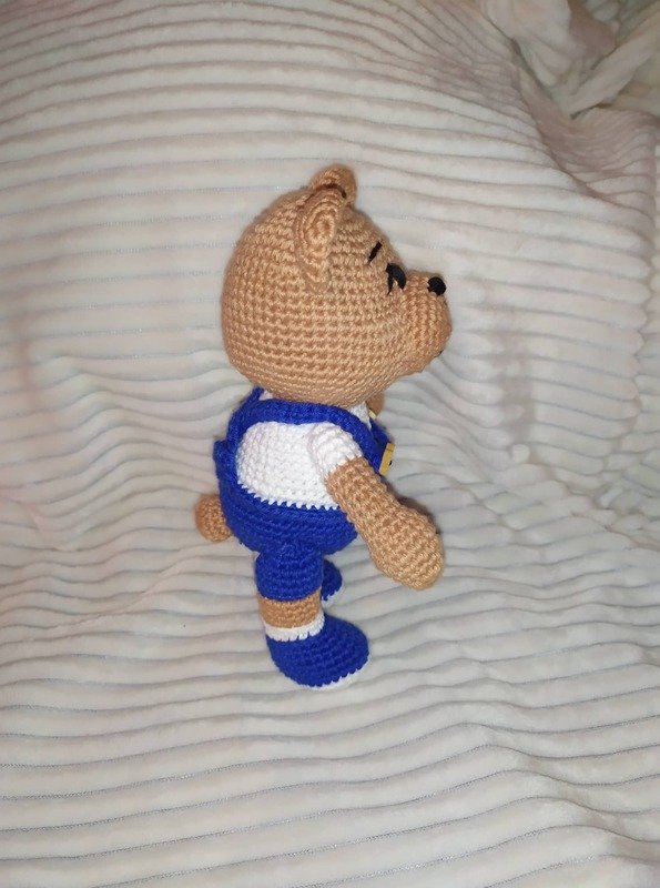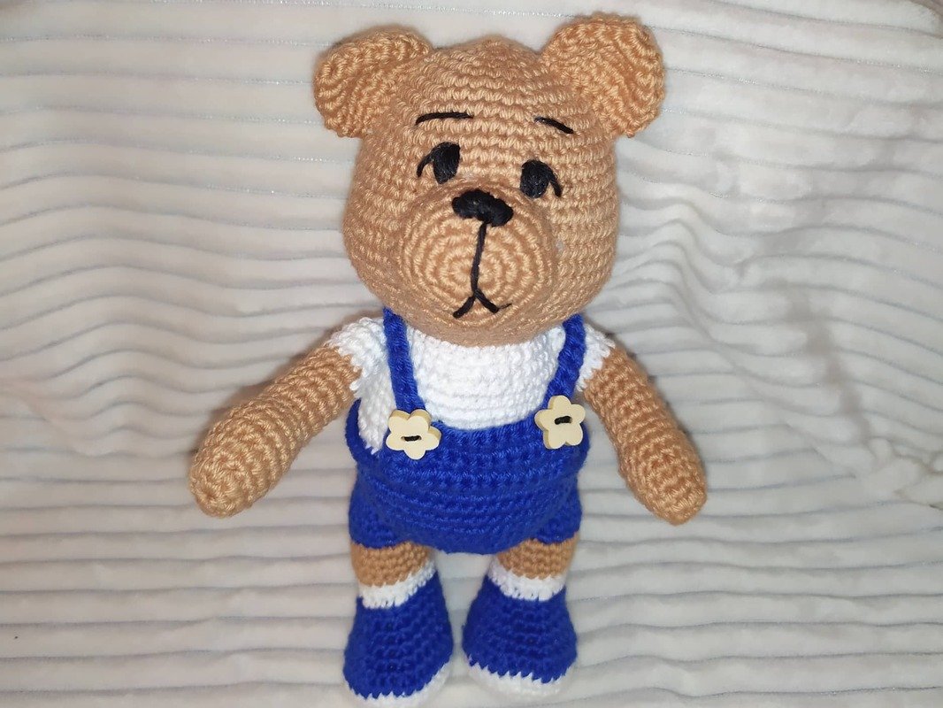 Je nach dem welche Wolle und Häkelnadel verwendet wird, wird der Bär zwischen 15 und 30 cm Groß
