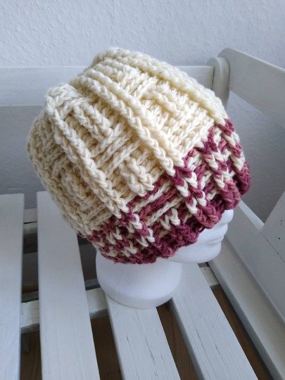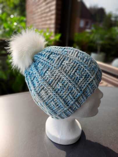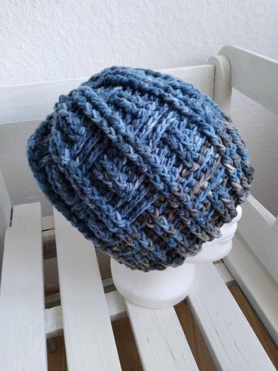 Klare Linien, geschaffen durch die einfache Kombination von vorderen und hinteren Reliefstäbchen, bringen die schöne Struktur der "Albschaf" Wolle super zur Geltung. Eine kuschelwarme Mütze für die ganze Familie.