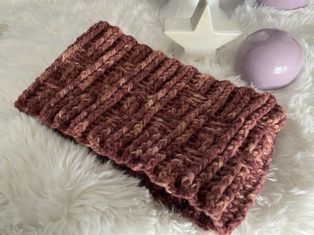 Klare Linien, geschaffen durch die einfache Kombination von vorderen und hinteren Reliefstäbchen, bringen die schöne Struktur der "Albschaf" Wolle super zur Geltung. Eine kuschelwarme Halssocke für die ganze Familie.