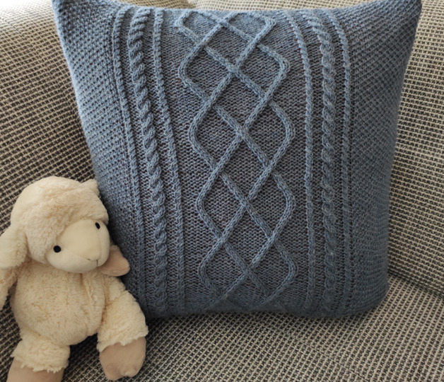 passend für eine dicke Kissenfüllung in 60 cm x 60 cm, der Bezug muss straff und gespannt sitzen, damit das Zopfmuster gut zur Geltung kommt