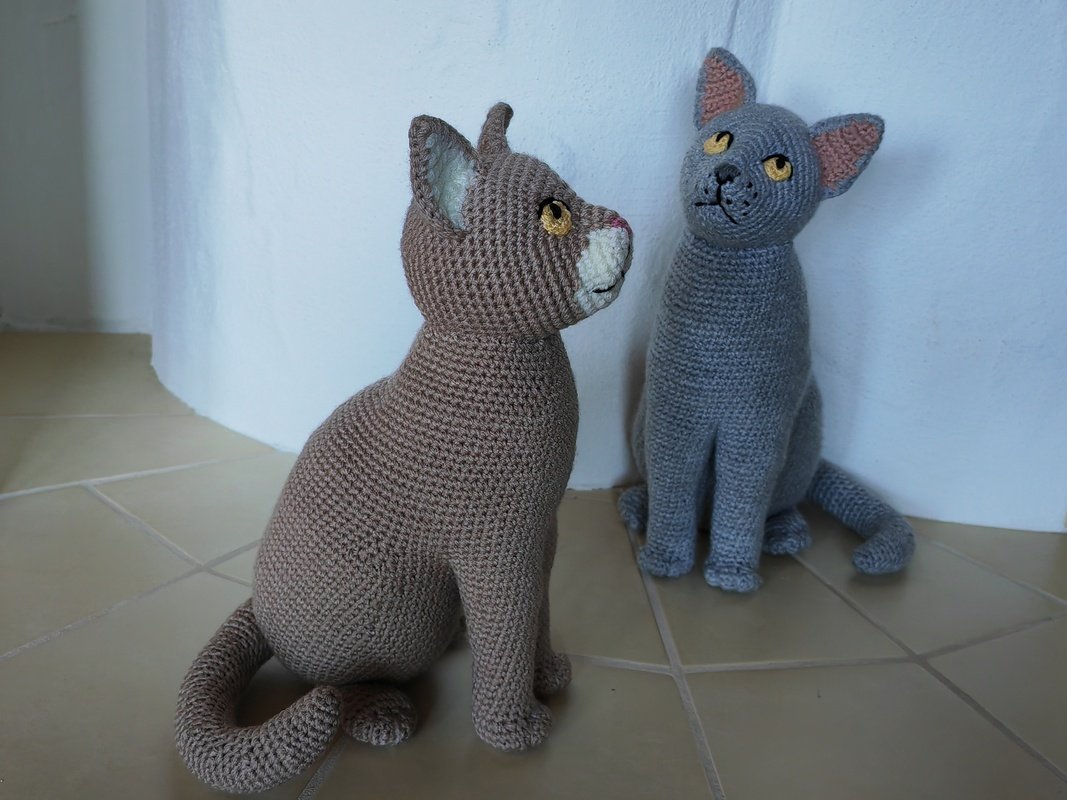 Habe gleich zwei Katzen gehäkelt. Nähen ist nicht so meins, aber nach zwei Anläufen saßen die Beine perfekt.