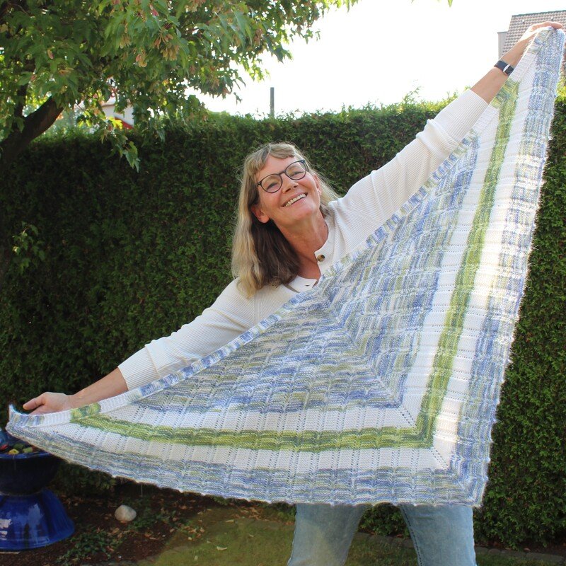 Durch die zunehmende Zahl an Patentmaschen und die unterschiedlichen Farben erhält es seine besondere Wirkung.