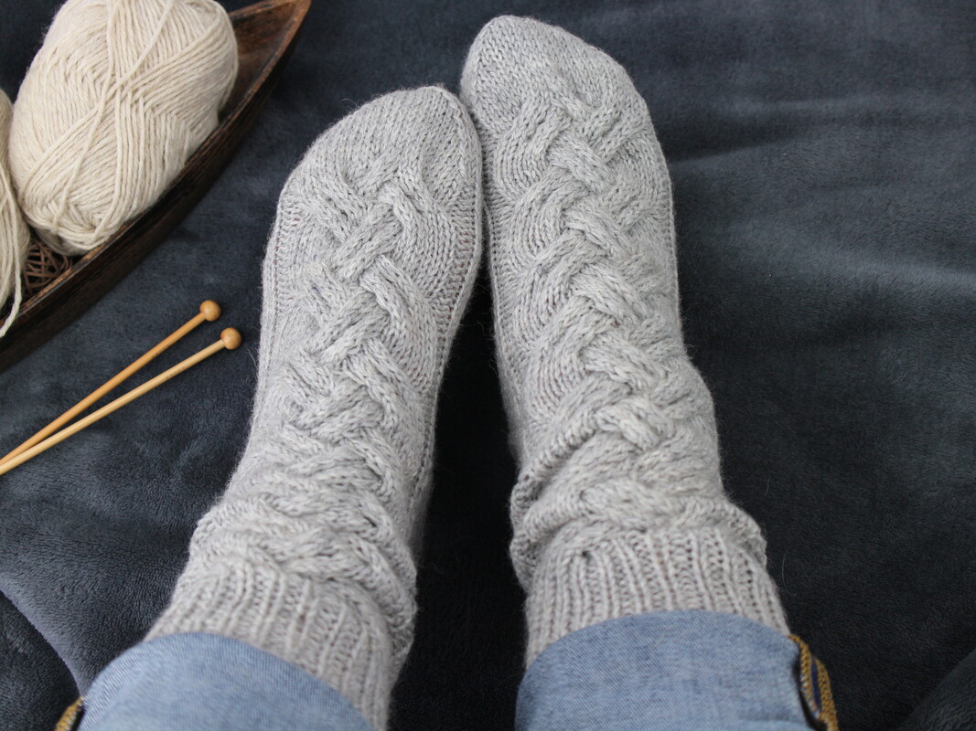 Strickanleitung Socken mit Zopfmuster für warme, stilvolle Wintersocken.