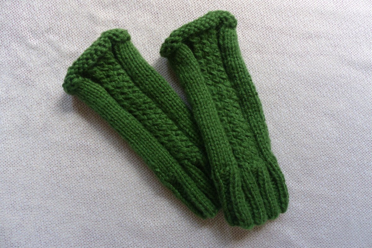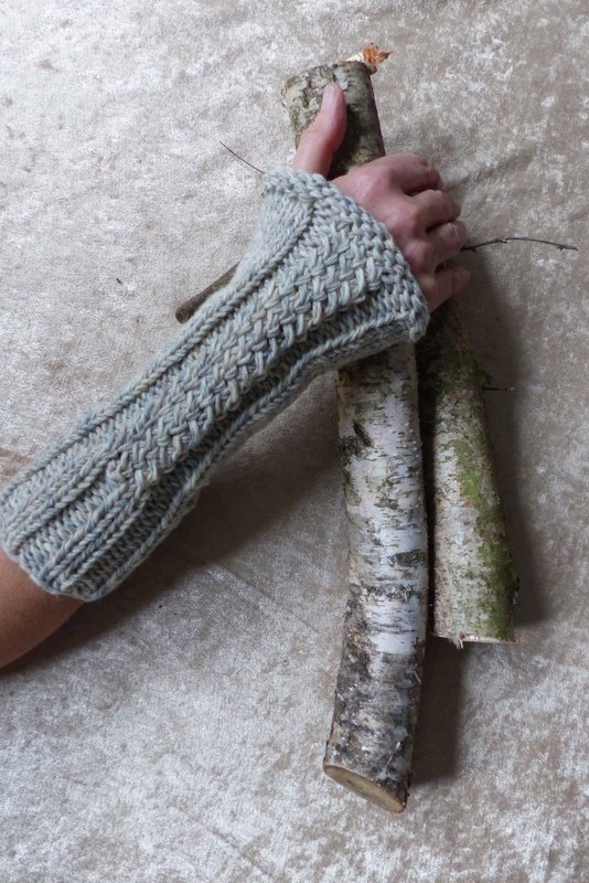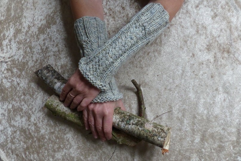Ich habe die Armstulpen mit doppeltem Garn gestrickt, so sind sie sehr warm. Als Muster habe ich ein Zopfmuster gewählt, welches über den Handrücken läuft.