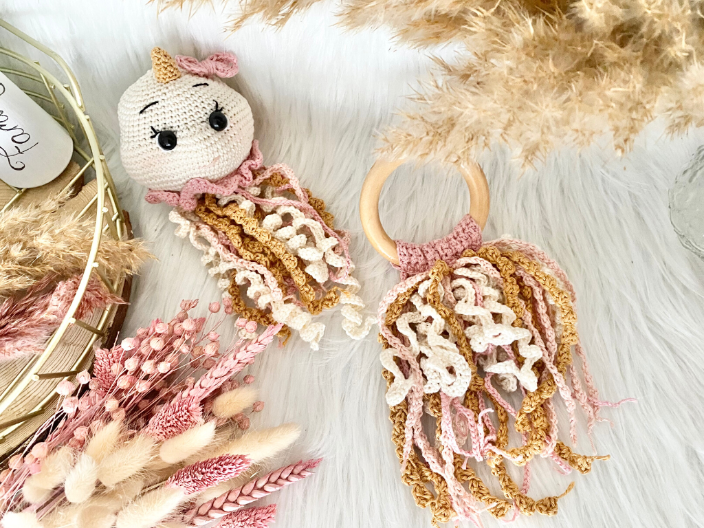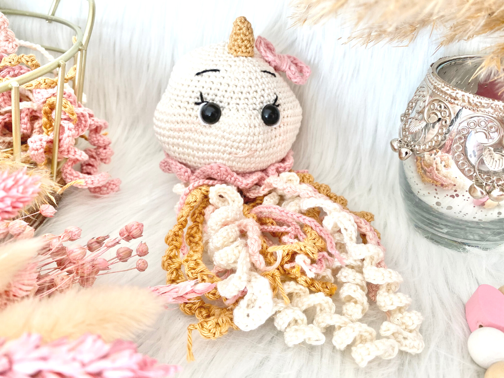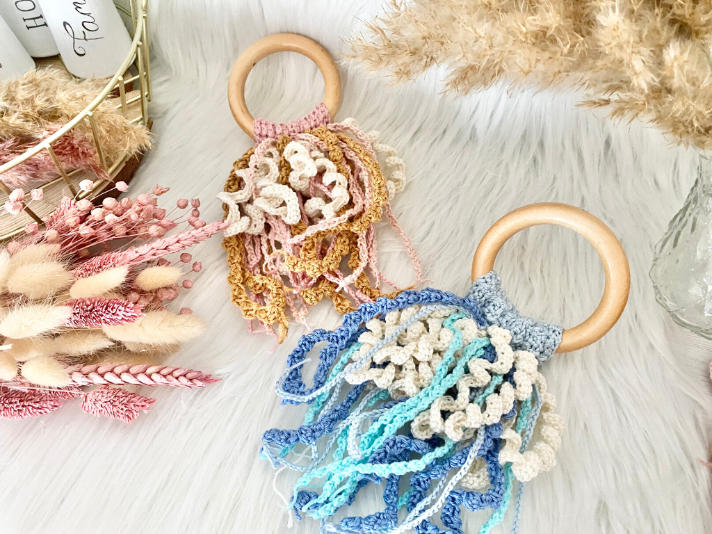 Mit dieser zauberhaften und sehr detaillierten Häkelanleitung, kannst du dir deinen eigenen kuscheligen Begleiter häkeln. Diese niedliche Qualle und der Quallengreifring sind ein wundervolles Geschenk zur Babyparty, Geburt oder zum Geburtstag.