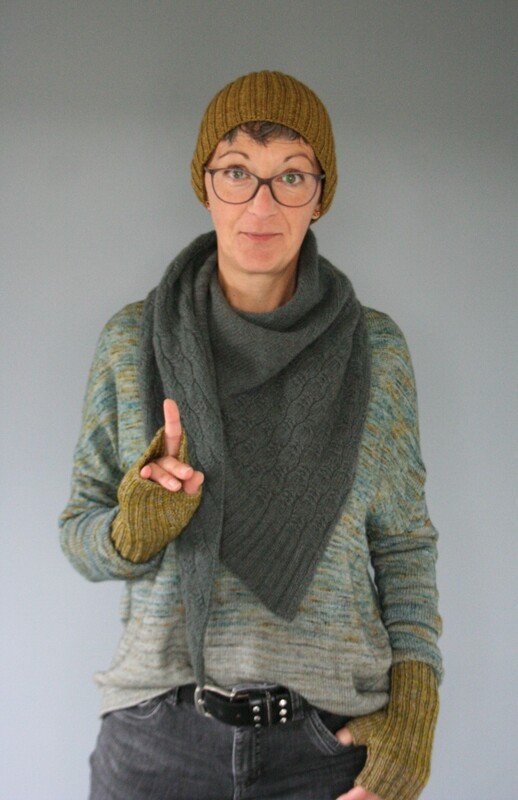 Garn: Fingering Weigth (420m/100g) oder 4fache Sockenwolle doppelt genommen oder DK Weigth (200m/100g) einfach genommen