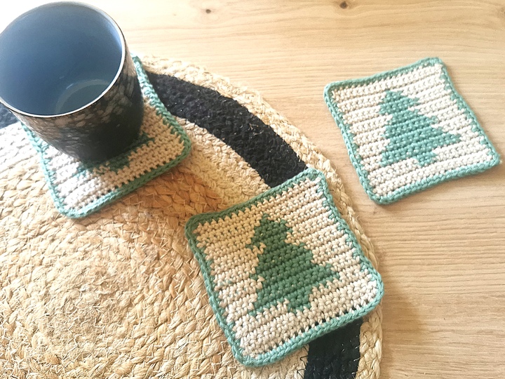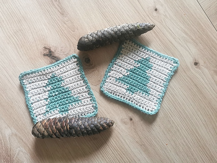 In dieser Anleitung erkläre ich euch sowohl schriftlich, als auch mit einer Chartvorlage (Häkelschrift), wie ihr diese süßen Tassenuntersetzer mit einem Tannenbaum Motiv nachhäkeln könnt.