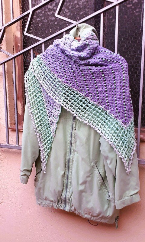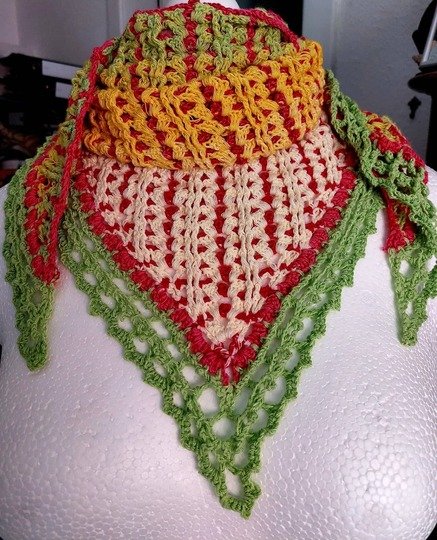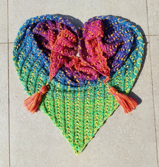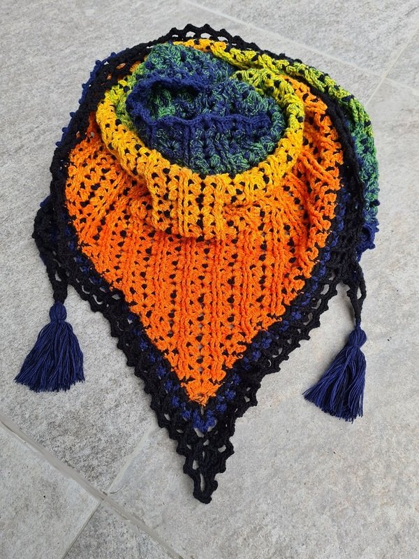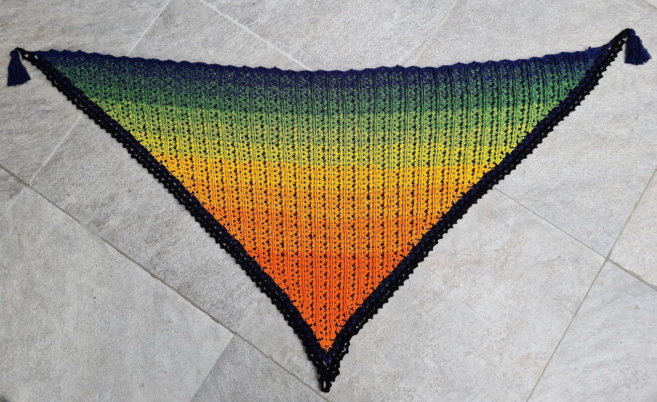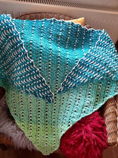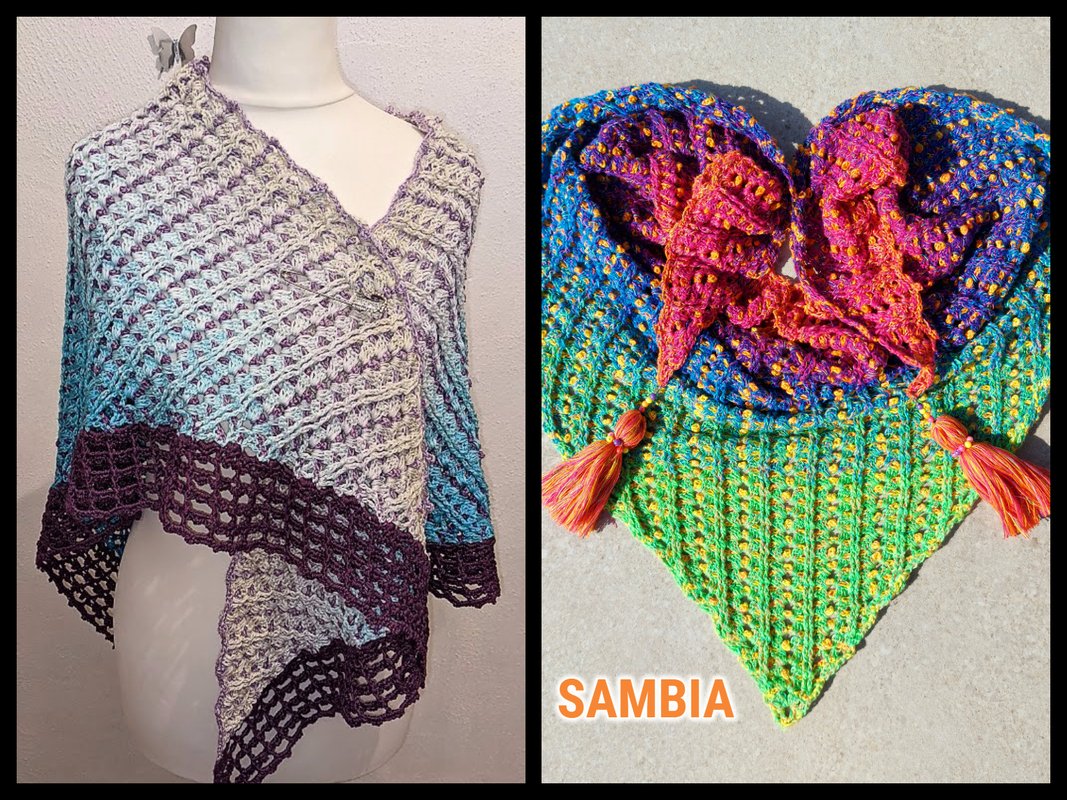SAMBIA ist ein pfiffiges Dreieckstuch, das mit (mindestens) zwei verschiedenen Farben gestaltet wird (ohne ständiges Fädenvernähen ;)) und das die Häkelrichtung ändert. Jedes Tuch wird aufregend und einzigartig durch die verwendeten Farbkombinationen.