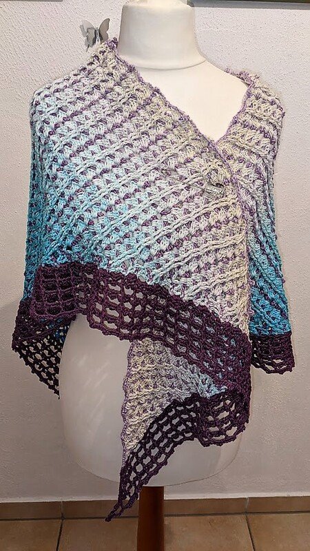 Tuch SAMBIA kann in jeder gewünschten Größe und entweder mit oder ohne Randmuster gehäkelt werden. Beide Seiten des Tuchs sind unterschiedlich und sehenswert.