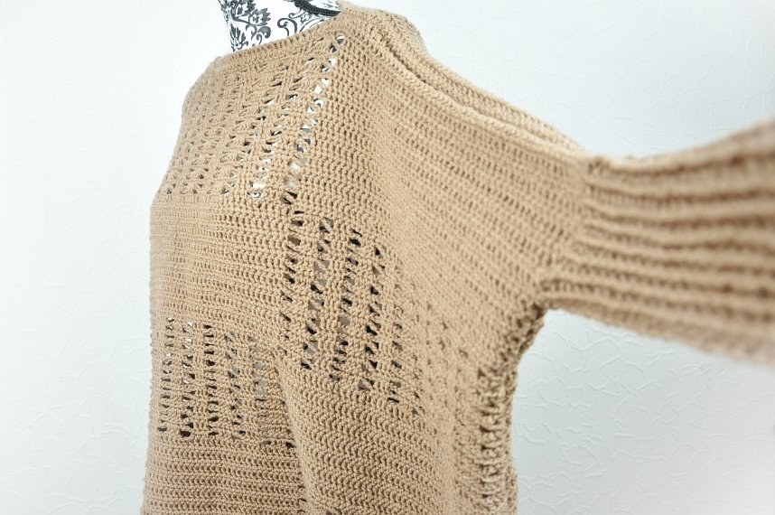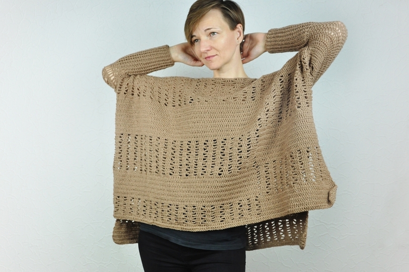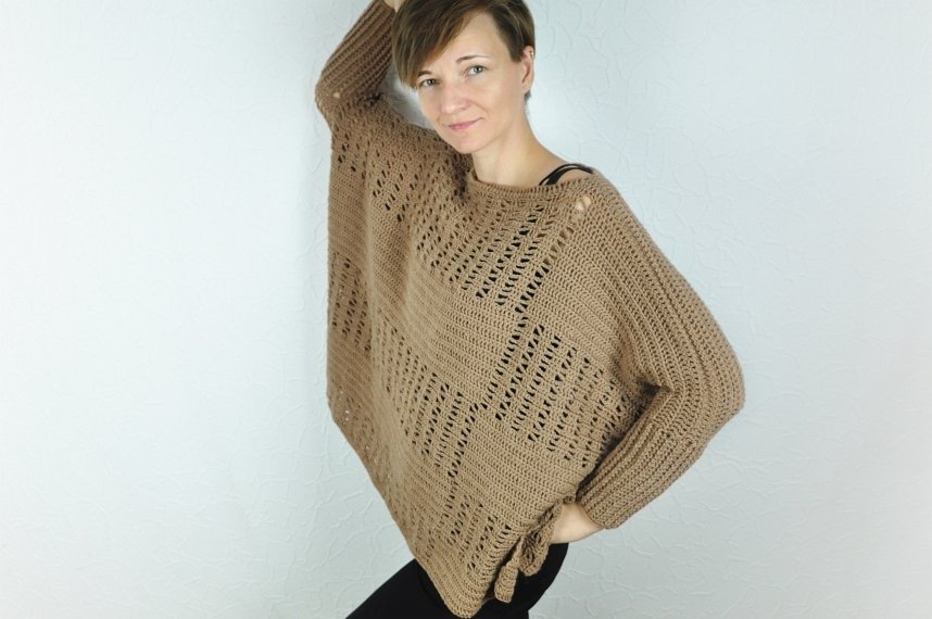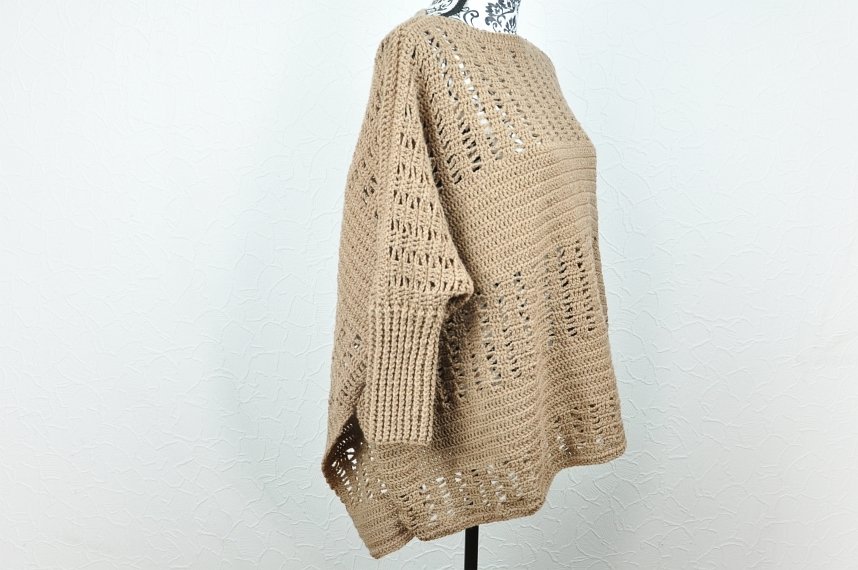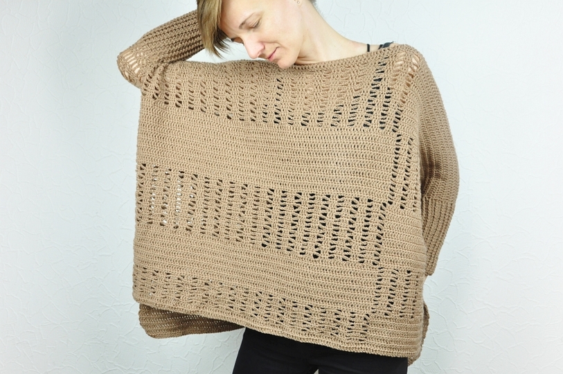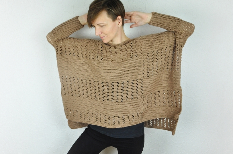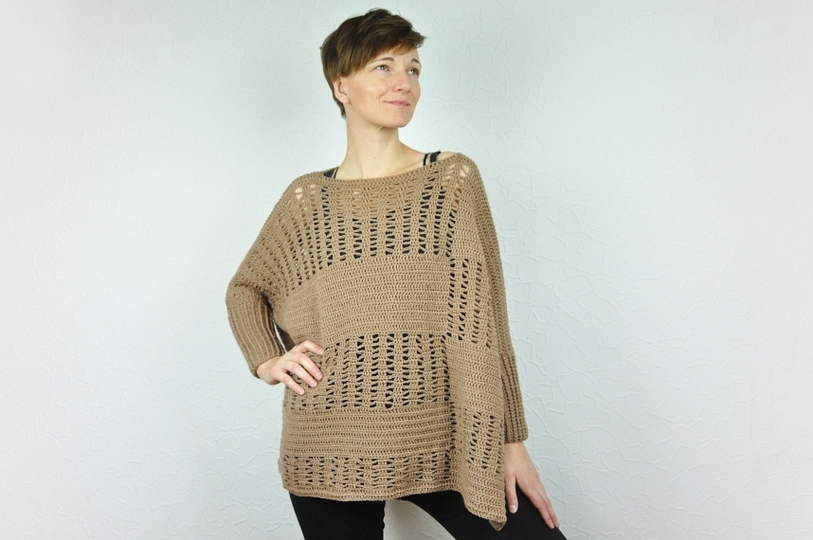Der Pullover wird in einem Grundmuster gehäkelt, das detailliert in der Anleitung beschrieben ist und schnell umgesetzt werden kann.