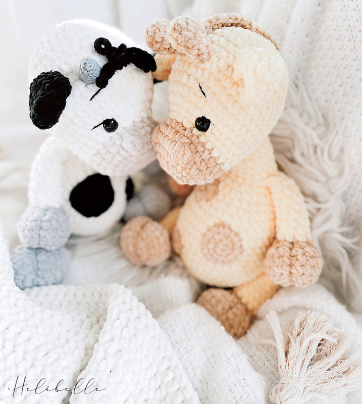 • Die Anleitung für Giraffe Cloé und Kuh Stella in deutscher Sprache