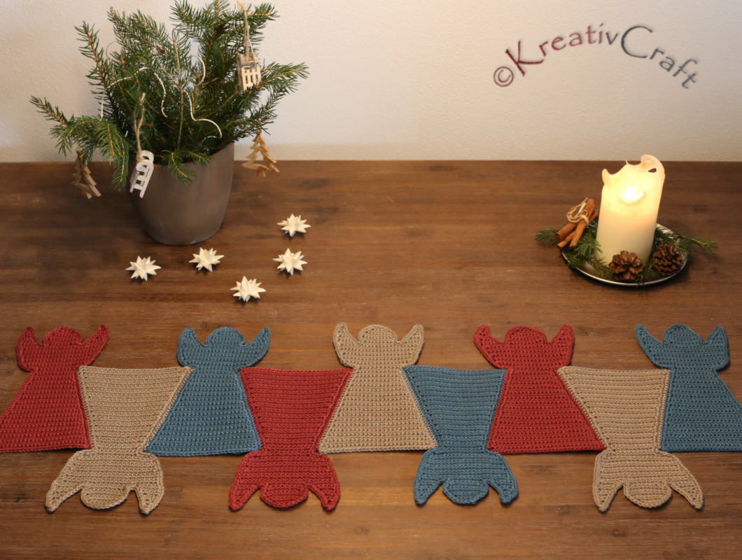 In meiner Häkelanleitung erkläre ich dir anhand einer detaillierten Beschreibung samt anschaulicher, mit Detailhinweisen versehener Bilder jeden einzelnen Schritt, damit du das Tischband mit Engelmotiv spielend leicht häkeln kannst.