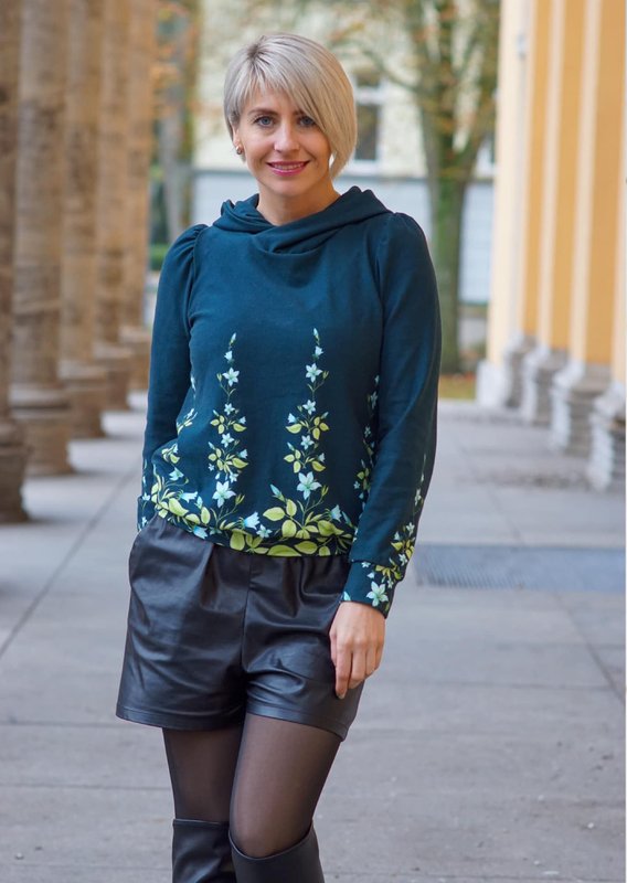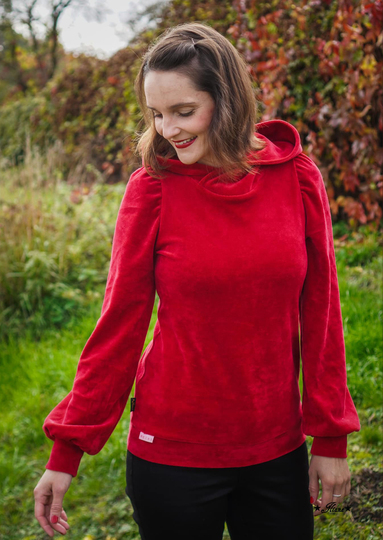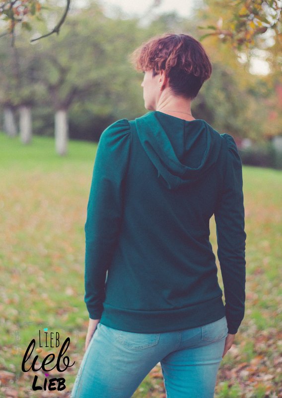 Inge ist ein Schnittmuster für einen lässigen, mädchenhaften Hoodie. Die legere aber doch weibliche Passform macht den Sweater super bequem und richtig kuschelig. Die charakteristischen Puffärmel in zwei Varianten sind total modern und einfach nur herrlich cool! Die extra weiten Ärmel betonen die Gemütlichkeit, während die engere Version einen schlicht-schicken Eindruck macht.